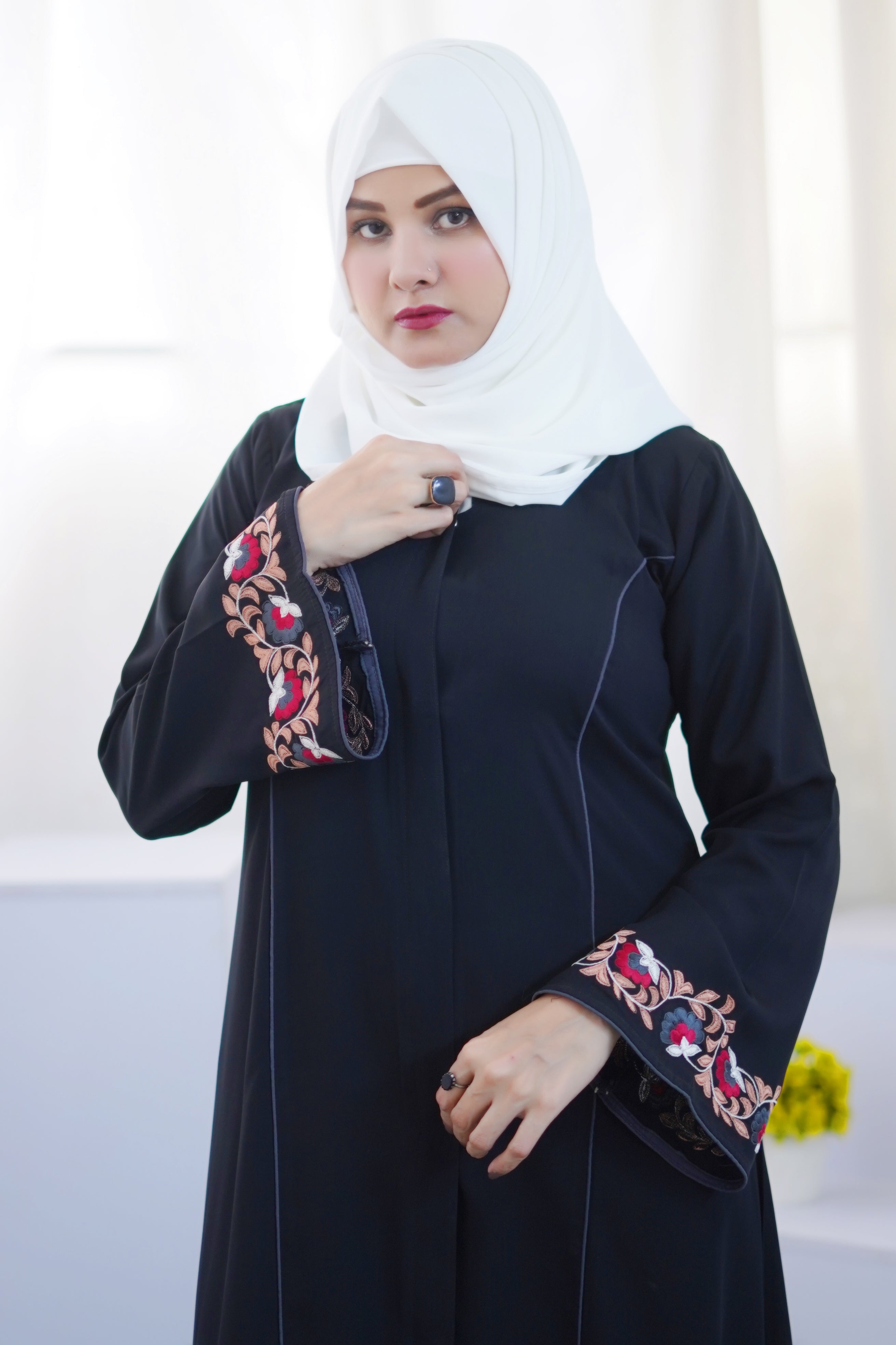 This Embroidered Elegance Abaya is a stunning blend of tradition and modernity, designed to bring out your graceful side. Crafted in a classic black shade, the abaya features intricate floral embroidery on the cuffs, adding a pop of color and an exquisite touch to the overall look. The loose, flowy cut ensures maximum comfort and modesty, making it perfect for both everyday wear and special occasions.
